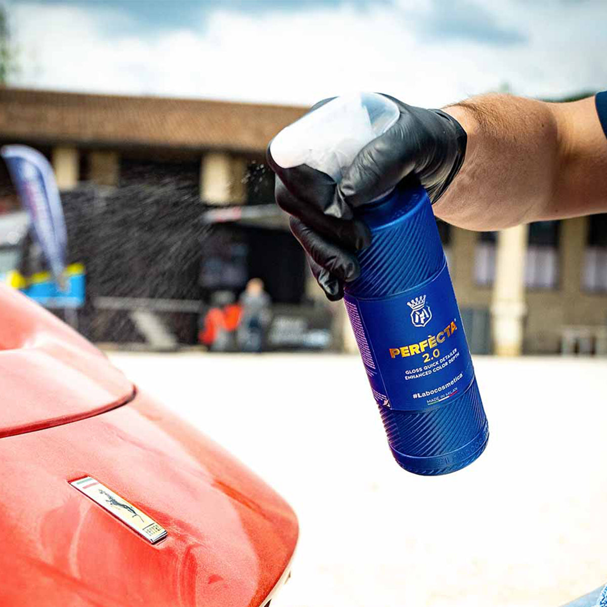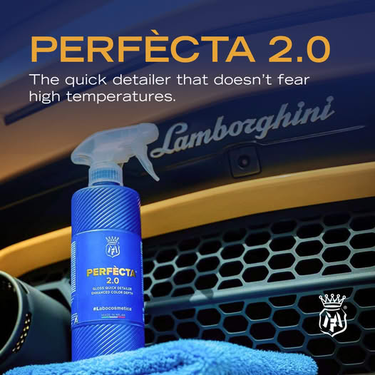 PERFECTA 2.0 is a fast-acting gloss quick detailer by Labocosmetica®, designed to clean, enhance shine, and boost color depth on bodywork, plastics, seals, and chrome. Ideal for quick touch-ups, it removes dirt, water spots, and insect residues while leaving a silky finish.