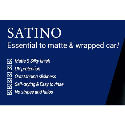 Satino Matte & Wrap Shampoo is a high-detergency shampoo designed for matte and wrapped finishes. It gently cleans, adds UV protection for up to 2 weeks, prevents streaks, and preserves the original matte look while being safe on waxes and coatings.